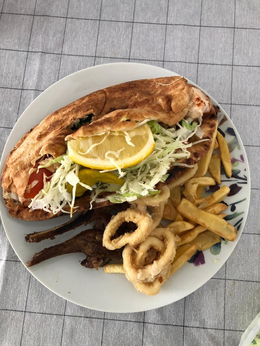 Now, let’s talk food. The Mix Kebab is an absolute must-try-it’s the kind of dish that turns first-timers into repeat customers. Packed with juicy lamb and chicken, perfectly seasoned and grilled, it’s served with a side of fluffy rice or golden chips, depending on your mood. The Lamb Souvlaki is another standout: tender, slightly charred, and full of bold, herby flavor. If you’re more of a seafood fan, the Calamari hits the mark-crispy on the outside, tender on the inside, and served with a zesty dipping sauce that balances everything out.